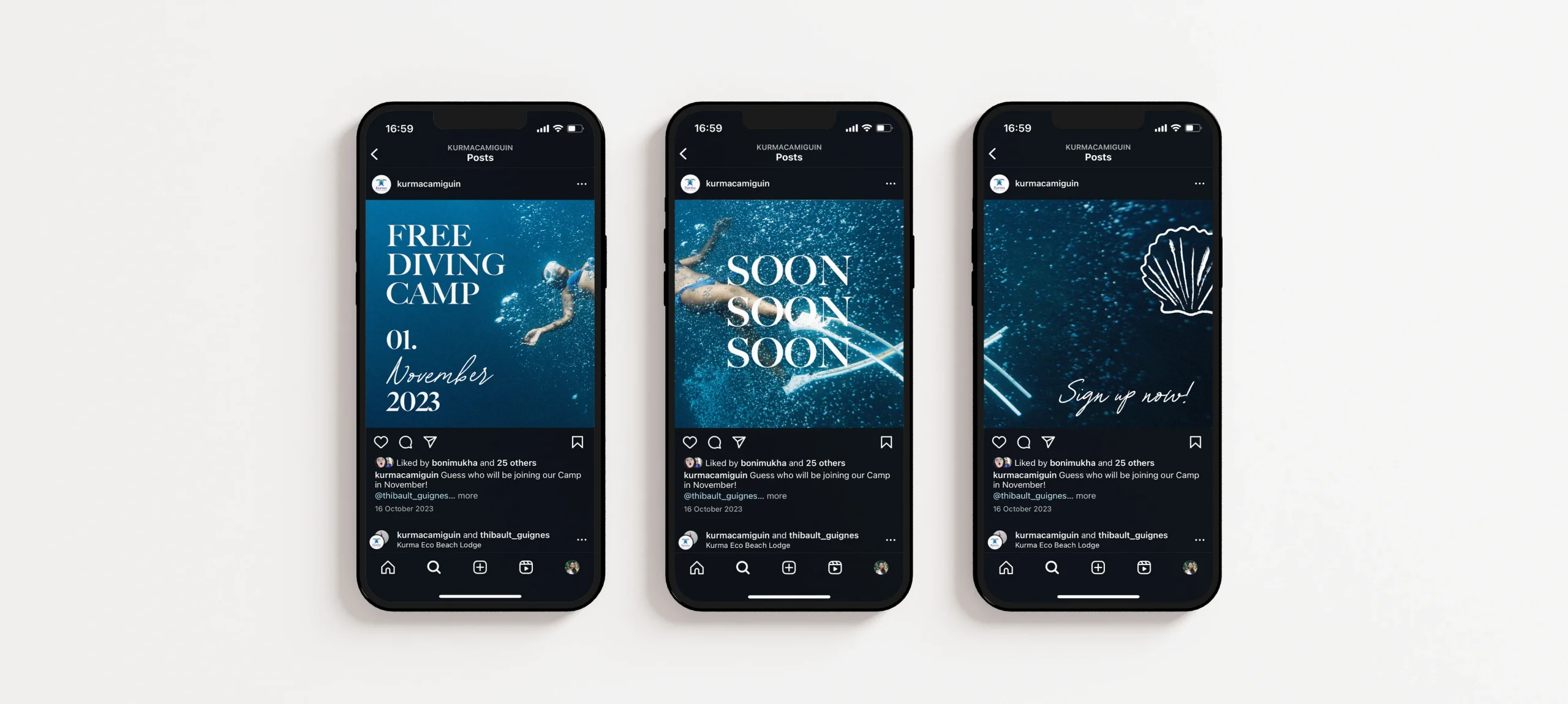 Kurma was a comprehensive social media project I managed and designed during my time living at the Freedive Camp. I was responsible for the entire channel's content creation and daily management, ensuring the brand’s message was consistently communicated to the audience. In addition to overseeing the social media, I supported the camp with content that captured the essence of freediving and the unique experiences it offered. This project holds a special place in my heart, as I was deeply involved in the community and culture of the camp. It allowed me to merge my passion for both design and storytelling,